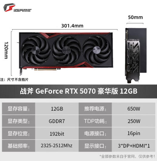 七彩虹(Colorful)5070TI 16G/5070 12G显卡火神AD战斧台式机游戏显卡